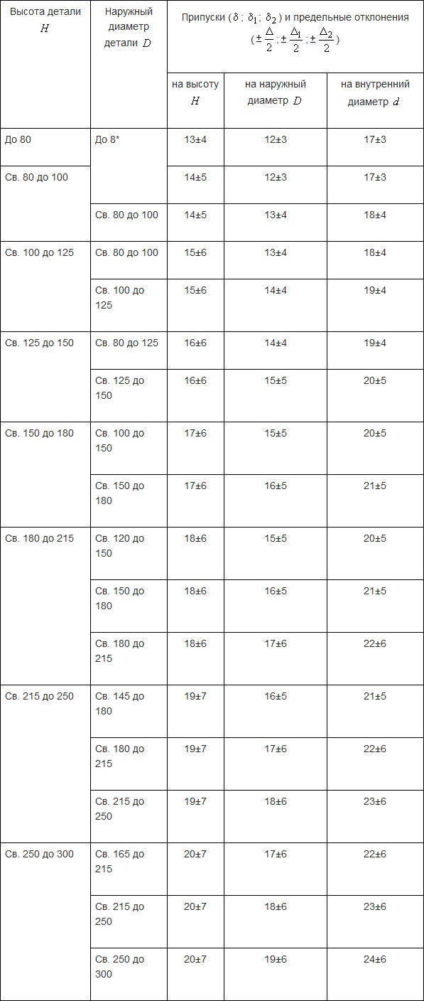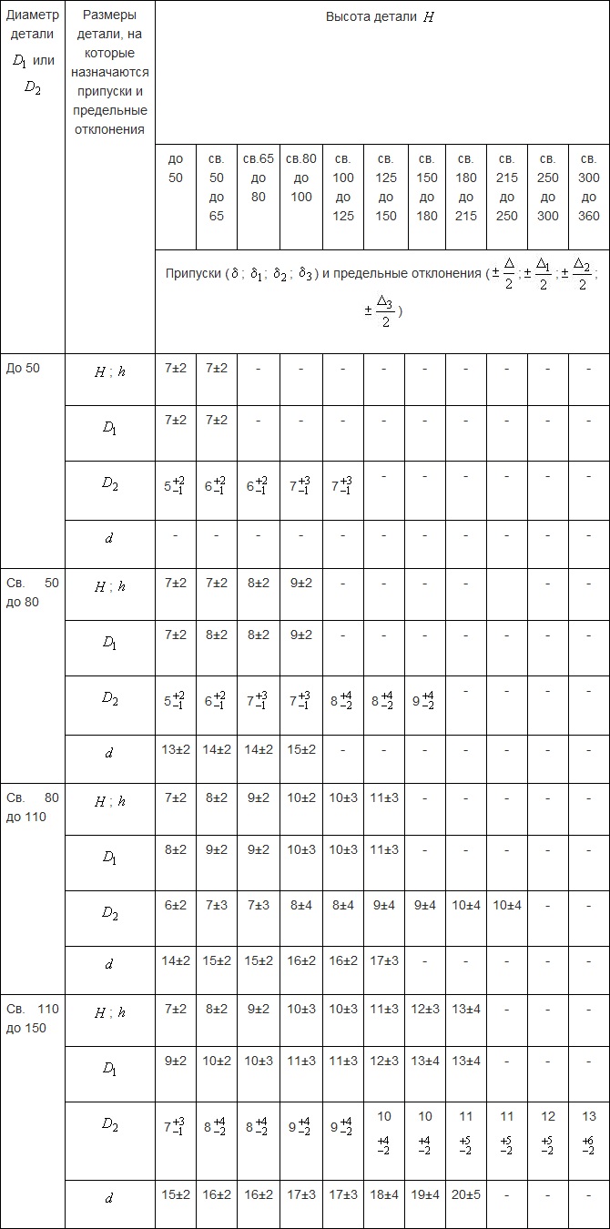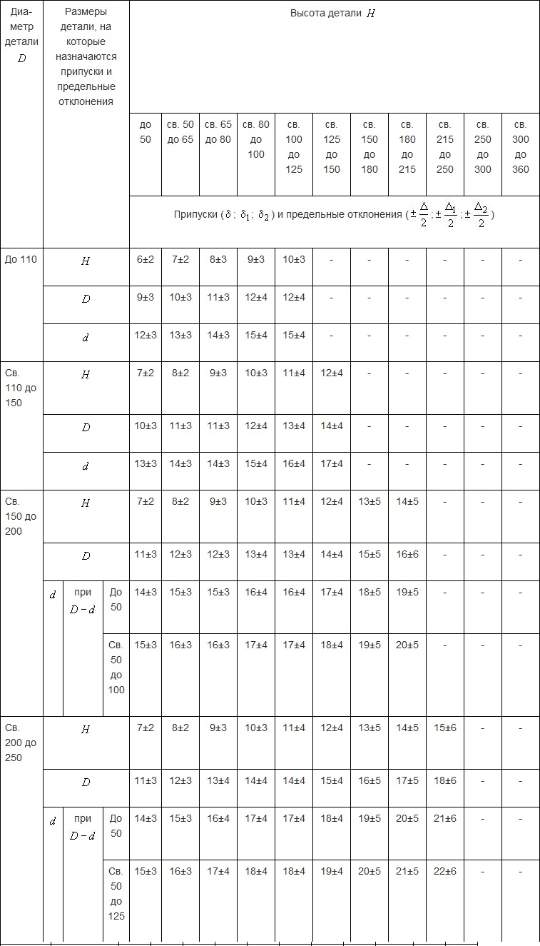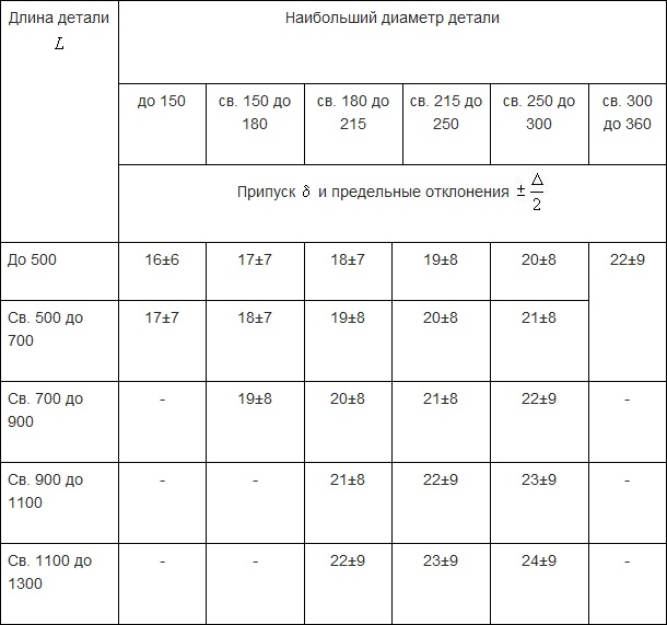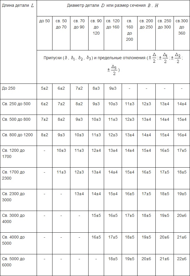 Для точного определения припусков необходимо учитывать геометрию детали и использовать соответствующую таблицу.