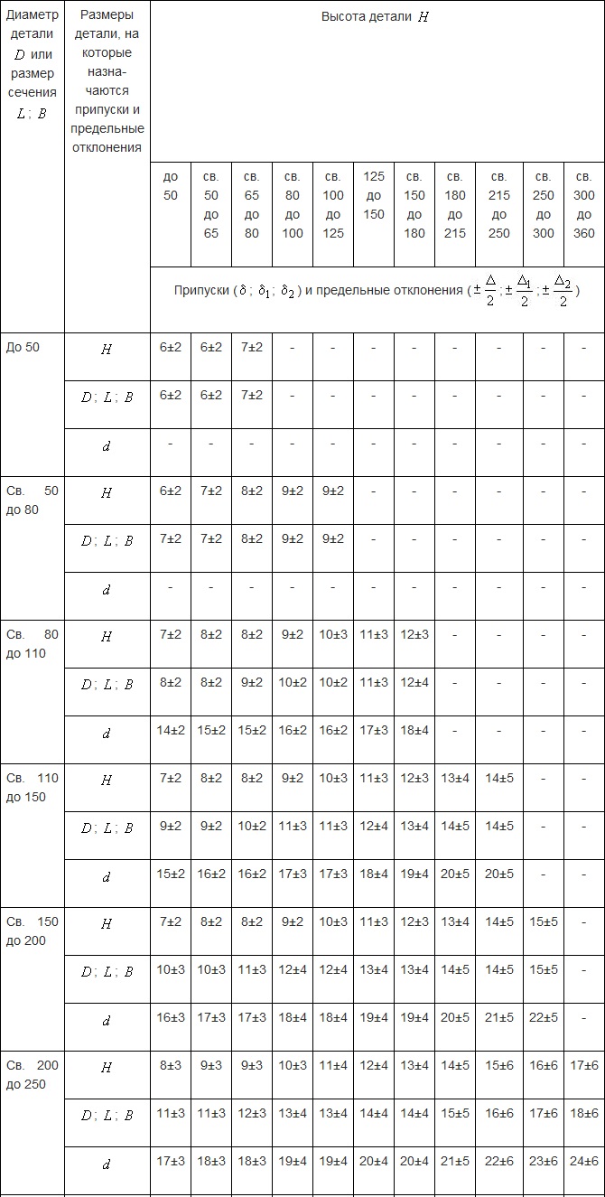 Припуски для заготовок используются не только при работе с режущим инструментом. Они получили широкое распространение в рамках ковки. Так, ГОСТ 7829-70 определяет следующие параметры припусков при ударном воздействии.