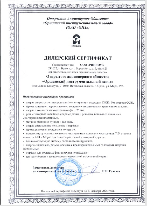 Если заказчик в других магазинах нашел изделия Оршанского инструментального завода дешевле, «Ринком» готов сделать индивидуальную скидку на партию приобретаемого товара.