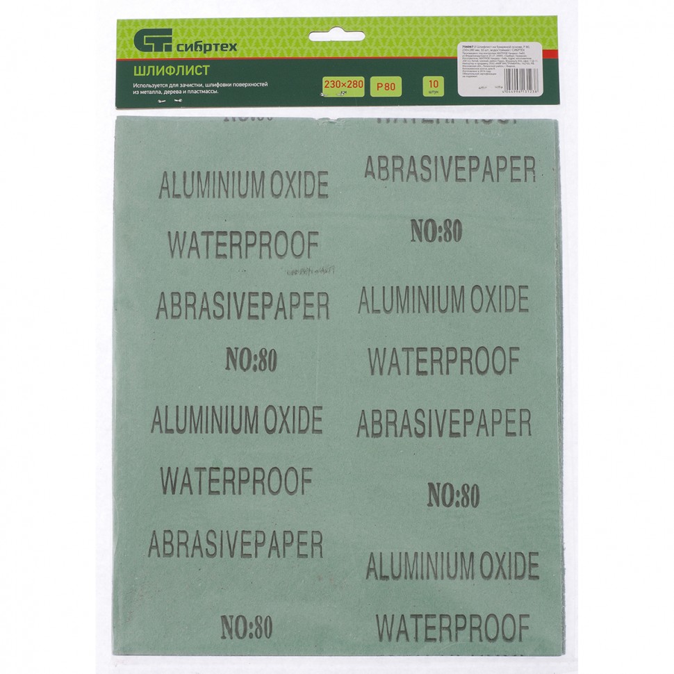 Доставка инструмента Шлифлист на бумажной основе, P 80, 230 х 280 мм, 10 шт, влагостойкий Сибртех