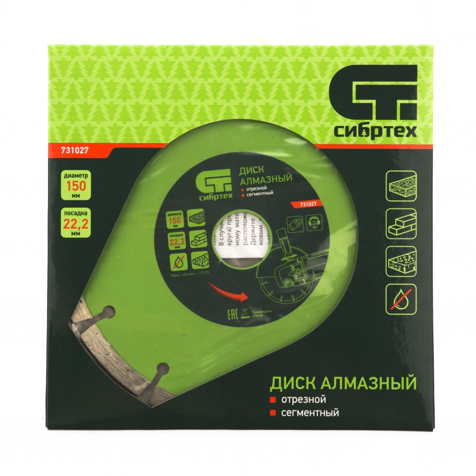 Доставка инструмента Диск отрезной алмазный 150х22,2 мм, сегментный, сухая резка Сибртех