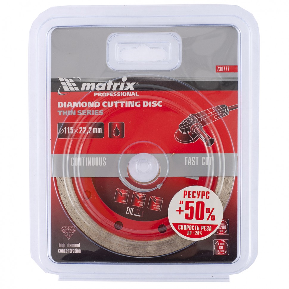 Доставка инструмента Диск отрезной алмазный 115х22,2 мм, сплошной, тонкий, мокрая резка Matrix Professional