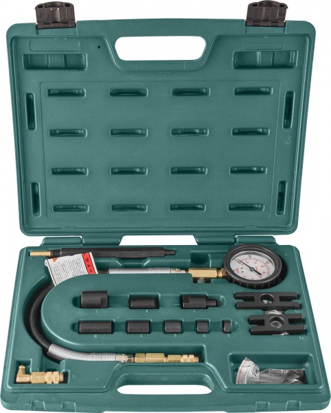 Компрессометр применяется для контроля состояния деталей цилиндро-поршневой группы и ГРМ дизельных двигателей грузовых автомобилей. Прибор комплектуется большим 100 мм манометром в ударопрочном, обрезиненном корпусе. Манометр рассчитан на измерение давления в диапазоне 0 – 60 кгс/см?. Соединительный, армированный шланг высокого давления, длиной 355 мм, имеет быстросъемный переходник для соединения с форсуночным адаптером.