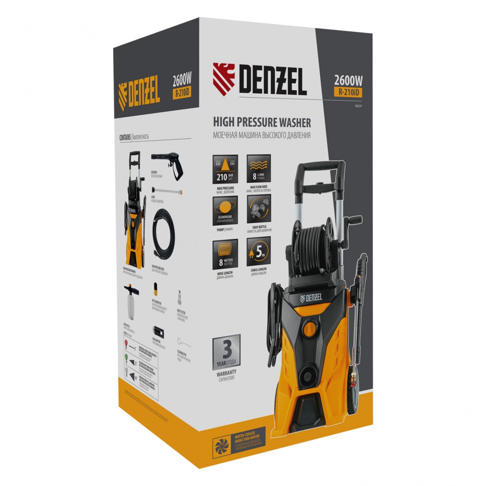 Доставка инструмента Моечная машина высокого давления R-210iD, 2600 Вт, 210 бар, 8.0 л/мин, асинхронный двигатель, барабан Denzel
