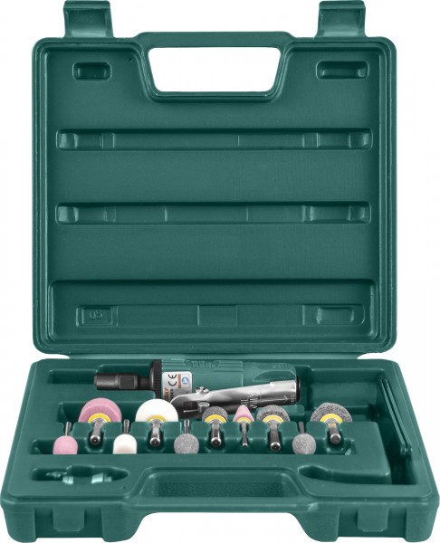 Высокоскоростная пневматическая бормашина с набором насадок и аксессуаров применяется для локальной шлифовки, зачистки фасонных и профилированных поверхностей деталей, изготовленных из металлов, камня и т.п., в зависимости от применяемой насадки. При работе обязательно использовать средства защиты рук, органов зрения и слуха, а при обработке металлов защитные перчатки, изготовленные из материалов с огнестойкой пропиткой.