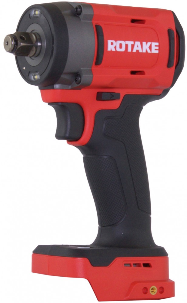 Гайковерт ударный аккумуляторный 1/2"DR ROTAKE. Инструмент оснащен двойной светодиодной подсветкой для оптимального освещения рабочей зоны, блоком управления режимами и автостопом со световой индикацией. Ударопрочный корпус с резино-полимерными вставками обеспечивает защиту от повреждений, а эргономичная противоскользящая рукоятка гарантирует удобство и надежность в использовании. Возможность установки дополнительных креплений для подвеса расширяет функциональность инструмента. Благодаря инновационной системе охлаждения CFD и интеллектуальной системе автоматической остановки, обеспечивается высокая долговечность и производительность. Аккумуляторные гайковерты ROTAKE применяются для проведения слесарно-монтажных работ и обслуживания резьбовых соединений в мастерских, цехах и производственных помещениях. Подходят для использования квалифицированным персоналом, имеющим опыт работы с электроинструментом и знакомым с правилами техники безопасности и условиями эксплуатации.