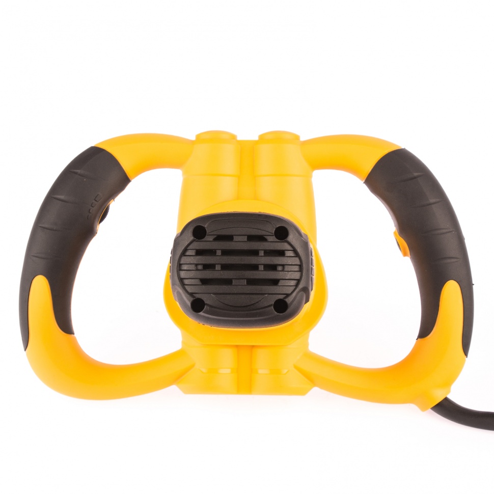 Электрический миксер Denzel EM-1-1220 предназначен для смешивания различных смесей, растворов, лакокрасочных материалов при проведении строительных и ремонтных работ. Благодаря мощности 1220 Вт достигается частота вращения оснастки 480/800 об/мин, в зависимости от выбранного режима.Миксер эффективно работает с мелким щебнем и крупнодисперсными смесями, а высокий крутящий момент 107 Нм позволяет смешивать даже вязкие растворы.Преимущества:Усиленная изоляция надежно защищает от поражения электрическим током.Плавный пуск предотвращает рывки инструмента в руках, уменьшает пусковой ток и защищает электродвигатель от резкого повышения нагрузки.2 скоростных режима (480 и 800 об/мин) позволяют эффективно смешивать растворы разной вязкости без разбрызгивания.Электронная регулировка оборотов обеспечивает быстрое переключение режимов работы.Диаметр оснастки 120 мм помогает равномерно смешивать строительные компоненты, не перегружая двигатель и руки мастера.Насадка-мешалка сделана съемной и разборной, что облегчает транспортировку и хранение миксера.Редуктор помещен в прочный металлический корпус, это решение улучшает теплоотвод и защищает миксер от перегрева.Конструкция редуктора «масляный гейзер» обеспечивает автоматическое смешивание смазочных веществ и их подачу ко всем частям миксера, что повышает его рабочий ресурс.Резьбовое соединение М14 упрощает крепление насадки к миксеру.Удобные рукоятки с прорезиненным покрытием удобно ложатся в руки и повышают комфорт эксплуатации миксера.Трехметровый сетевой кабель расширяет рабочую зону и позволяет работать без переходника.Гарантия увеличена до 3-х лет, средний срок службы составляет 5 лет.
