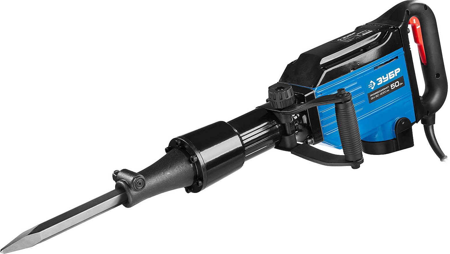 Отбойный молоток электрический, бетонолом HEX 28 ЗУБР ЗМ-50-2000 ВК, предназначен для разрушения конструкций из бетона, железобетона, кирпича и камня, долбления уплотненного грунта, асфальтовых, бетонных и плиточных покрытий и других строительных работ. Инструмент для легкого выполнения тяжелых работ. Профессиональный отбойный молоток, рассчитанный на интенсивную нагрузку. Обладает мощностью, достаточной для разрушения любых конструкций. Патрон НЕХ для установки широкого спектра профессионального расходного инструмента и быстрой замены в процессе работы. Антивибрационная система значительно снижает вредное воздействие вибрации на оператора при длительной работе. Сила удара генерируется механизмом без давления на инструмент. Удобный выключатель с системой блокирования непроизвольного включения для Вашей безопасности. Отключающиеся угольные щетки предотвращают повреждение коллектора ротора. Противоскользящее покрытие рукоятки для надежного удержания. Быстрый доступ к щеткам для замены.