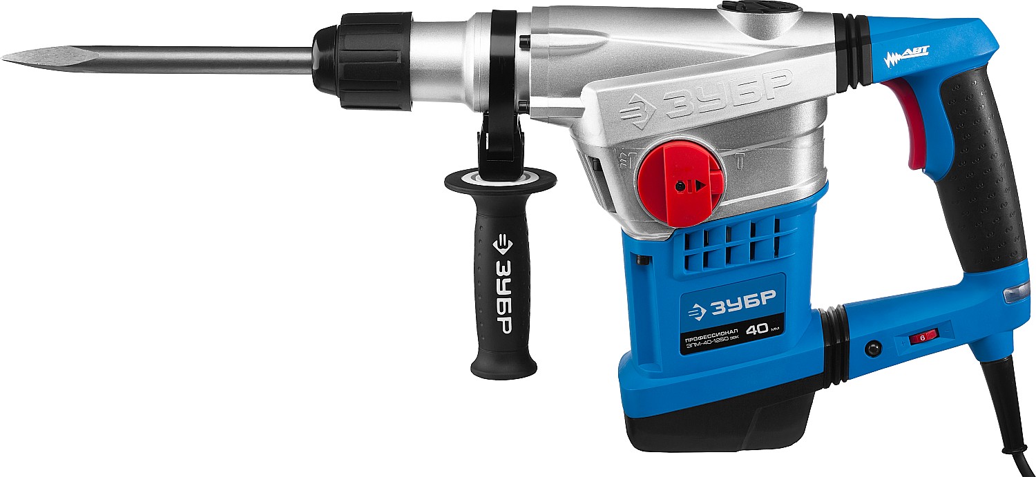 Перфоратор ЗУБР ЗПМ-40-1250 ЭВК, предназначен для сверления отверстий в различных материалах (дерево, сталь, бетон, кирпич и т. д.) в режимах сверления и сверления с ударом, а также для работы с долотом в режиме «удар». Сбалансированный по мощности и удобству инструмент в своем классе. Надежный перфоратор с достаточной мощностью и небольшим весом. Большая сила удара позволяет быстро выполнять отверстия необходимого диаметра даже в самых твердых материалах без перегрузки изделия и утомления. Патрон SDS Max для установки широкого спектра профессионального расходного инструмента и быстрой замены в процессе работы. Двойная антивибрационная система (подпружиненная рукоятка + противовес) значительно снижает вредное воздействие вибрации на оператора при длительной работе. Предохранительная муфта эффективно защищает изделие и оператора от перегрузок при заклинивании инструмента.