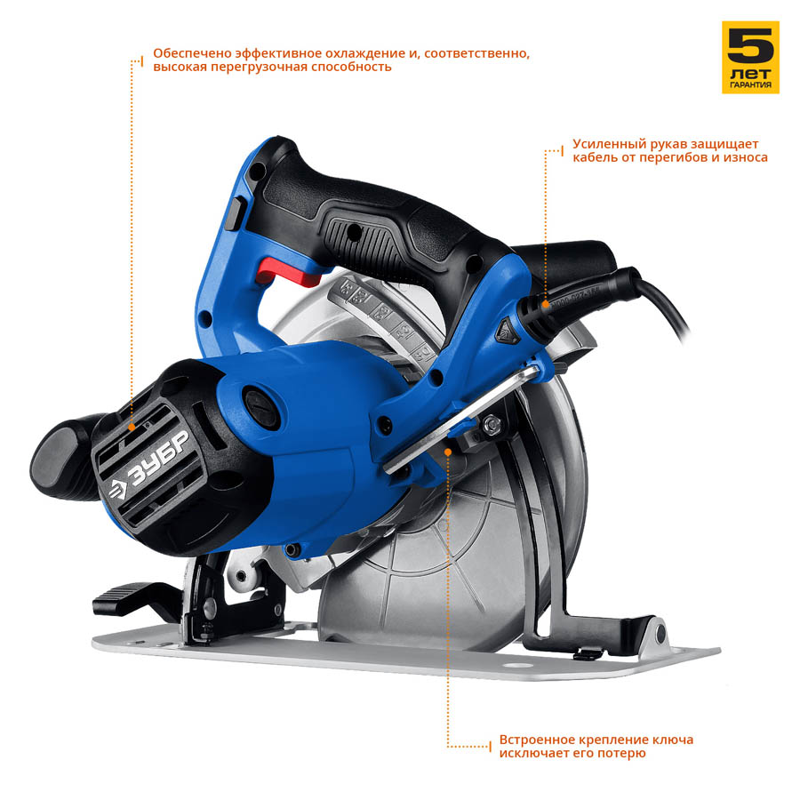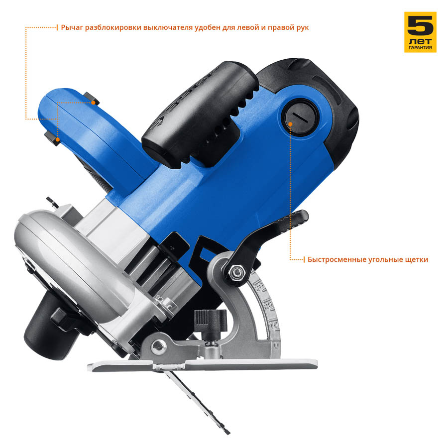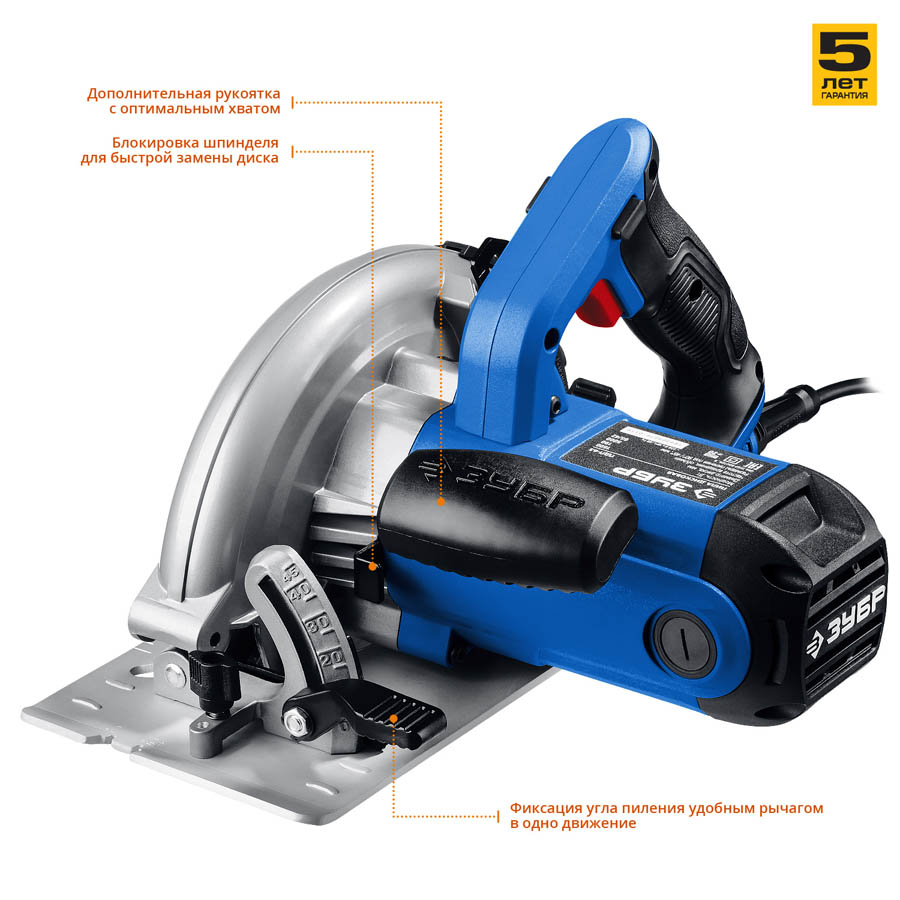 Циркулярная пила ЗУБР ПДП-65, предназначена для выполнения распиловочных работ по дереву и иным материалам (при установке соответствующего диска) под различными углами, а также под наклоном. Прочное алюминиевое основание гарантирует жесткость конструкции и высокую точность реза. Всегда видимые индикаторы линии реза под углами 90 и 45 градусов помогают пилить точно по разметке. Бесступенчатая регулировка глубины и угла пиления с удобными шкалами для точных работ. Простая замена диска благодаря рычажковой блокировке шпинделя. Наглядные и удобно расположенные шкалы угла наклона и глубины. Патрубок для подключения пылесоса для эффективного пылеотвода. Легко скользящий защитный кожух предохраняет оператора от травм. Дополнительная рукоятка под естественный хват обеспечивает удобство и полный контроль во время работы. Удобный встроеный держатель ключа позволяет не потерять его при работе и хранении. Быстрый доступ к щеткам.