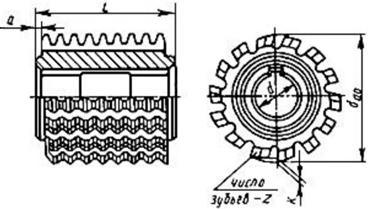 Фрезы червячные для нарезания зубьев (шлицов) на валах зубчатых (шлицевых) соединений с эвольвентным профилем в народе часто называют шлицевыми фрезами. Такие фрезы выпускаются классом точности А, В, С,, имеют угол профиля 30° и подразделяются на 2 типа: