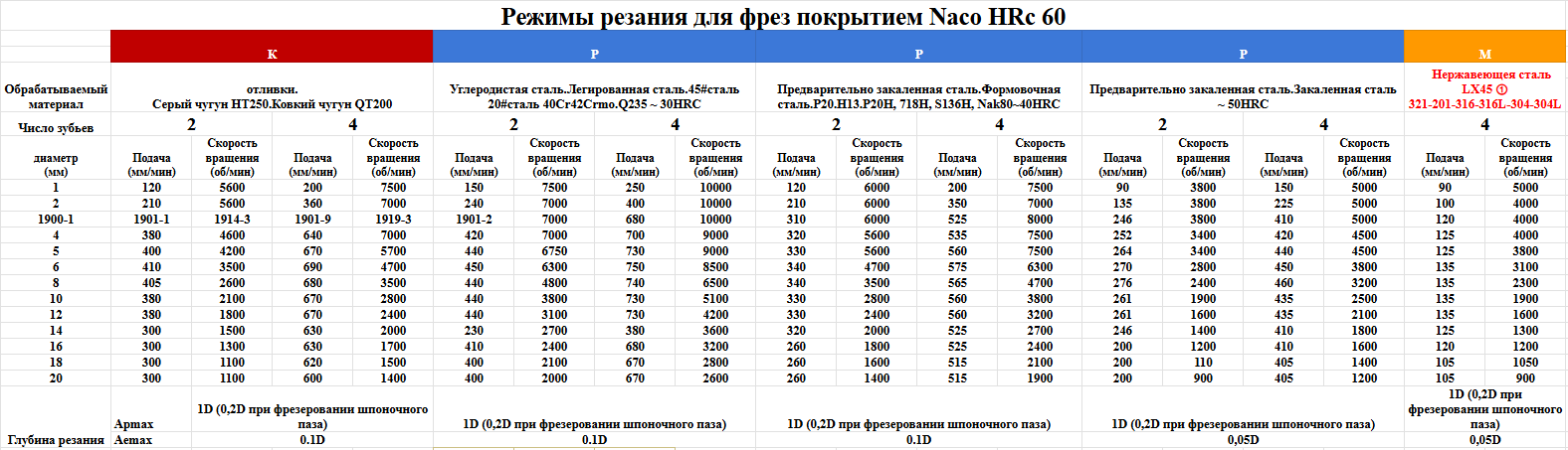 Фреза из материала LF10 с покрытием nACo подходит для фрезерования отверстий D = 12 мм, на глубину 30 мм в материалах по ISO: PMKSH.