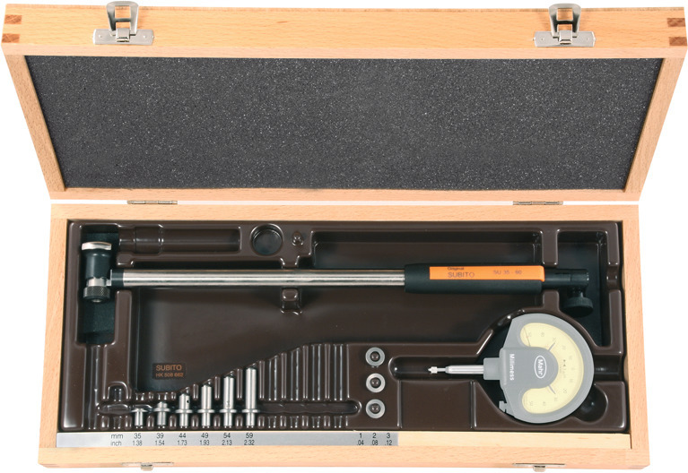 <h3>Исполнение:</h3> <div>Самоцентрирующийся двухточечный индикаторный нутромер с подпружиненным центрирующим диском. Равномерная и точная передача хода измер. штифта посредством сегментного звена. Настройка на разные диаметры обеспечивается при помощи сменных микрометрических винтов. Измер. штифт из твёрдого сплава. Держатель прибора защищен от влияния тепла рук и температуры окружающего воздуха.<br>Несъёмные измерительные наконечники <b>из стали.</b></div> <h3>Применение:</h3> <div>Для прецизионного измерения диаметра отверстий, концентричности и цилиндричности, измерения внутренних профилей.</div> <h3>Объем поставки:</h3> <div>Нутромер индикаторный в сборе (без индикатора).</div> <h3>Специальные принадлежности:</h3> <div>Удлинения для больших глубин измерения № 435142, компаратор № 434674, индуктивный компаратор № 434670, калибр-кольца № 484030.</div> <h3>Примечание:</h3> <div>При использовании компараторов необходим дополнительный удлинитель № 434920 разм. 10 или измерительный щуп № 434900 разм. 16. Исполнения с диапазоном измерения до 800 мм поставляются на заказ.</div>