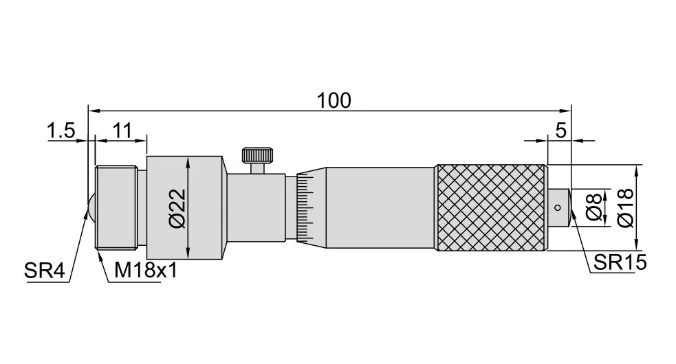 Перемещение измерительной головки = 25 мм.