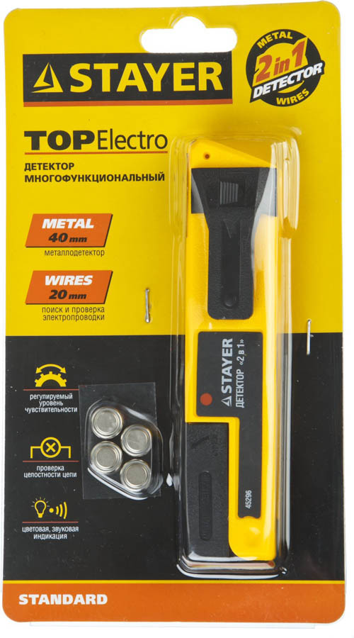 Как купить Детектор многофункциональный STAYER 2 в 1 45296 поиск металла и скрытой электропроводки?