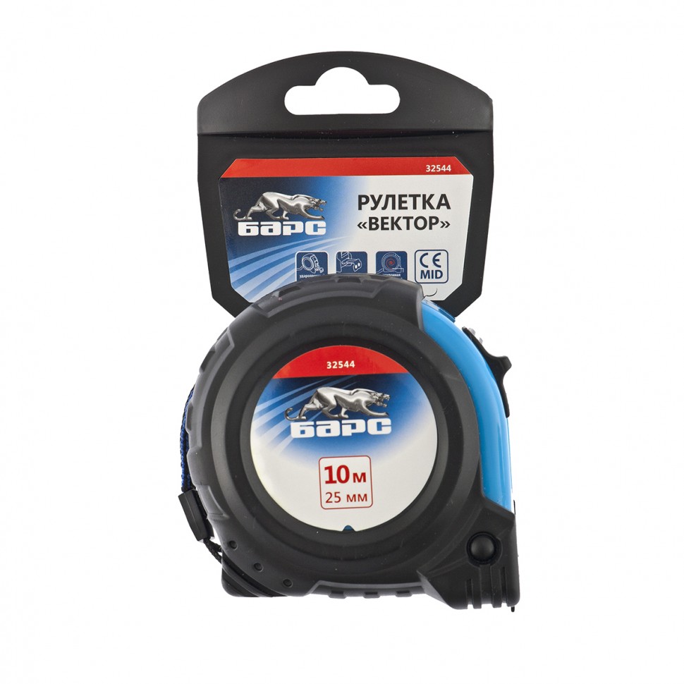 Как купить Рулетка Вектор 10 м х 25 мм, утолщенное полотно, магн. зацеп, обрез. корпус Барс?