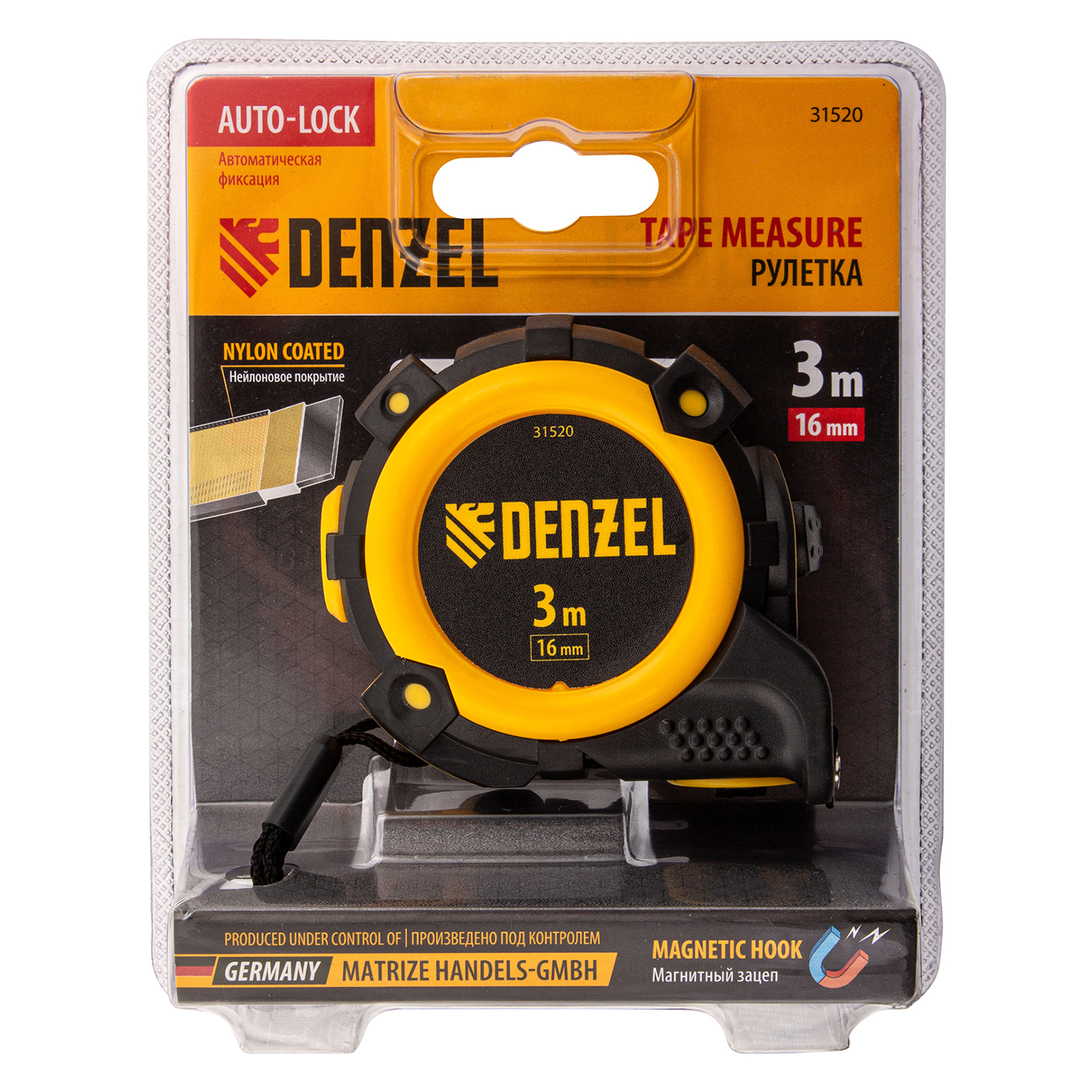 Как купить Рулетка 3м х 16мм, автоматич. фиксац., нейлон. покрытие, магнит. зацеп, двухстор. разметка Denzel?