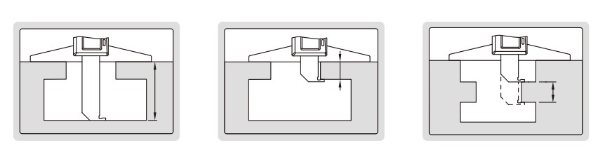 Отсчет размеров производится непосредственно считыванием показаний на ЖК экране цифрового отсчетного устройства, расположенного на рамке штангенглубиномера. Также на рамке находятся кнопки выключения/ включения штангенглубиномера (OFF/ON), установки нуля (ZERO) и выбора режима единиц измерений мм/дюйм (mm/inch). Питание штангенглубиномеров осуществляется от встроенного источника питания.