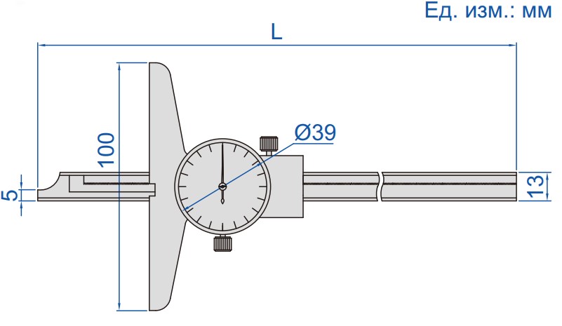 Индикаторный глубиномер. С измерительной поверхностью рамки в виде плоской прямоугольной поверхности основания и измерительной поверхностью штанги в виде плоского выступа