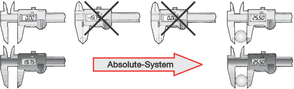 Результат измерения выводится на удобный для считывания дисплей (высота цифр 9 мм). Ёмкостная измерительная система встроена в штангу, где она защищена от повреждений и грязи. Система абсолютных измерений.