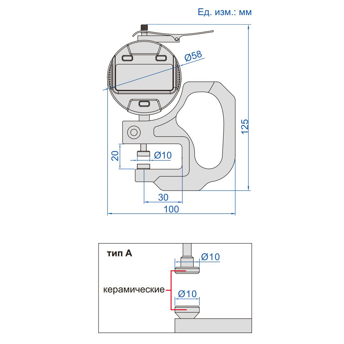 Цифровой толщиномер. Толщиномер состоит из корпуса, неподвижного плоского измерительного наконечника, подвижного плоского измерительного стержня, отсчетного устройства и арретира для толщиномеров с нормированным измерительным усилием.