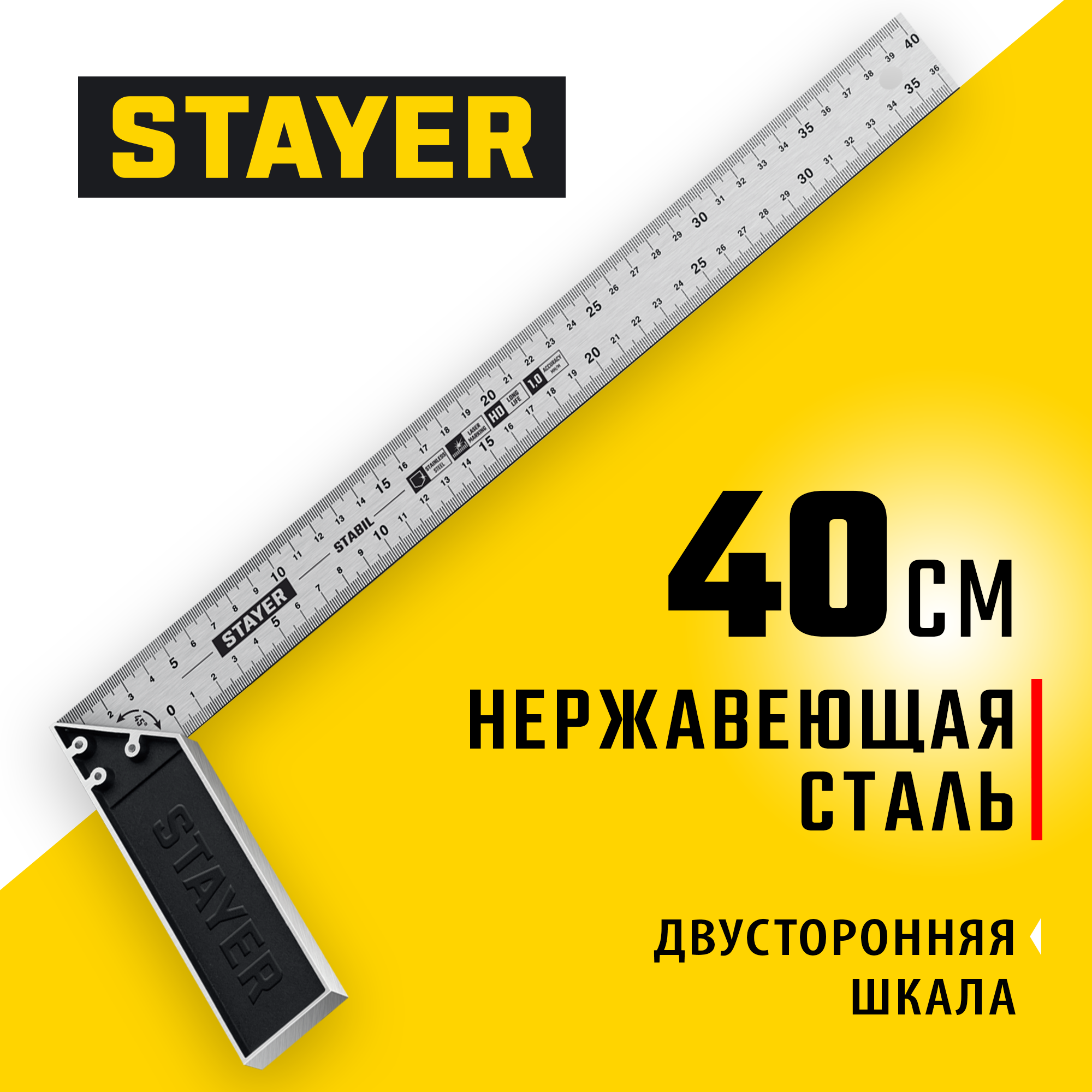 Доставка инструмента Угольник с нержавеющим полотном STAYER STABIL 3431-40_z02 400 мм, столярный