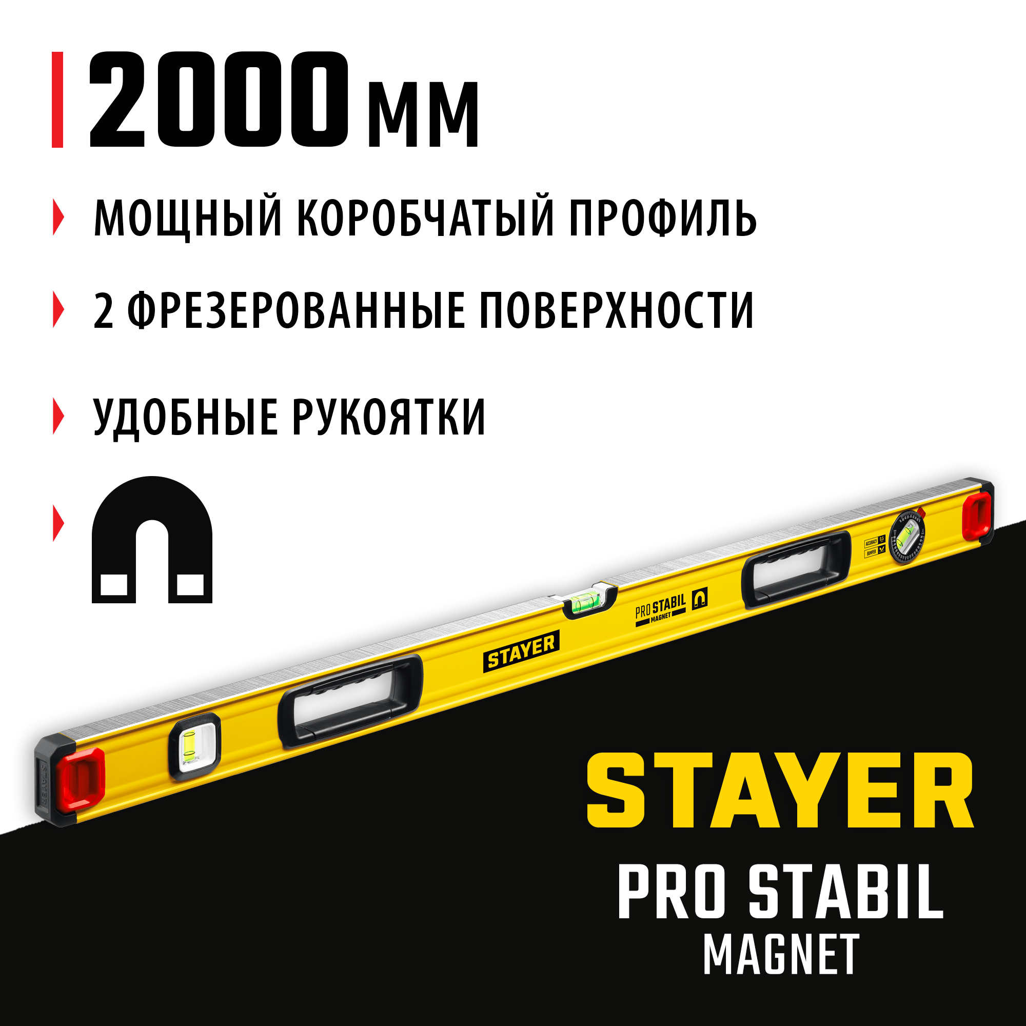 Как купить Уровень магнитный STAYER PRO STABIL MAGNET 3480-200 2000 мм, 3 глазка, точность 0.5 мм/м?