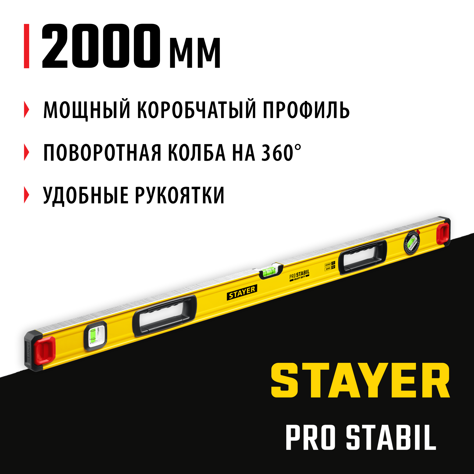 Как купить Уровень строительный фрезерованный PRO STABIL STAYER 2000 мм, 3 глазка, точность 0.5 мм/м, 3471-200_z02?