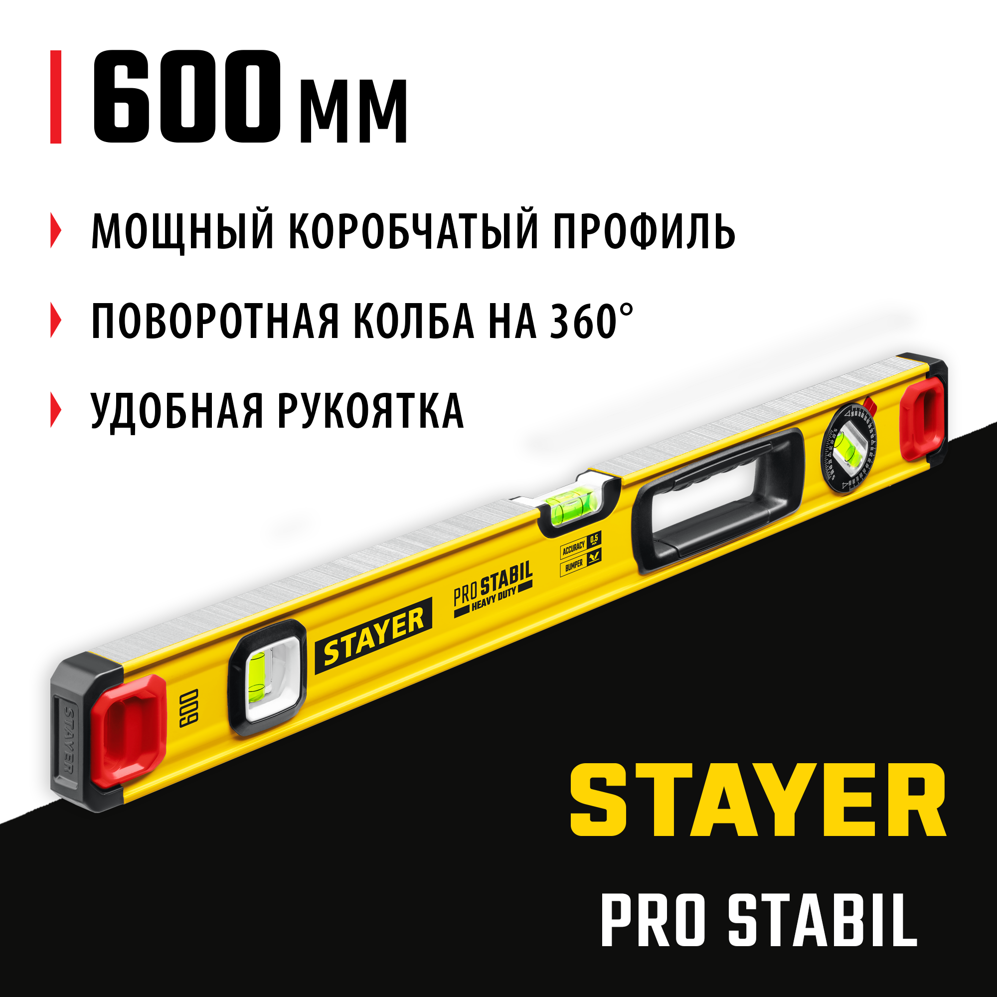 Как купить Уровень строительный фрезерованный STAYER 600 мм, 3 глазка, точность 0.5 мм/м, PRO STABIL 3471-060_z02?