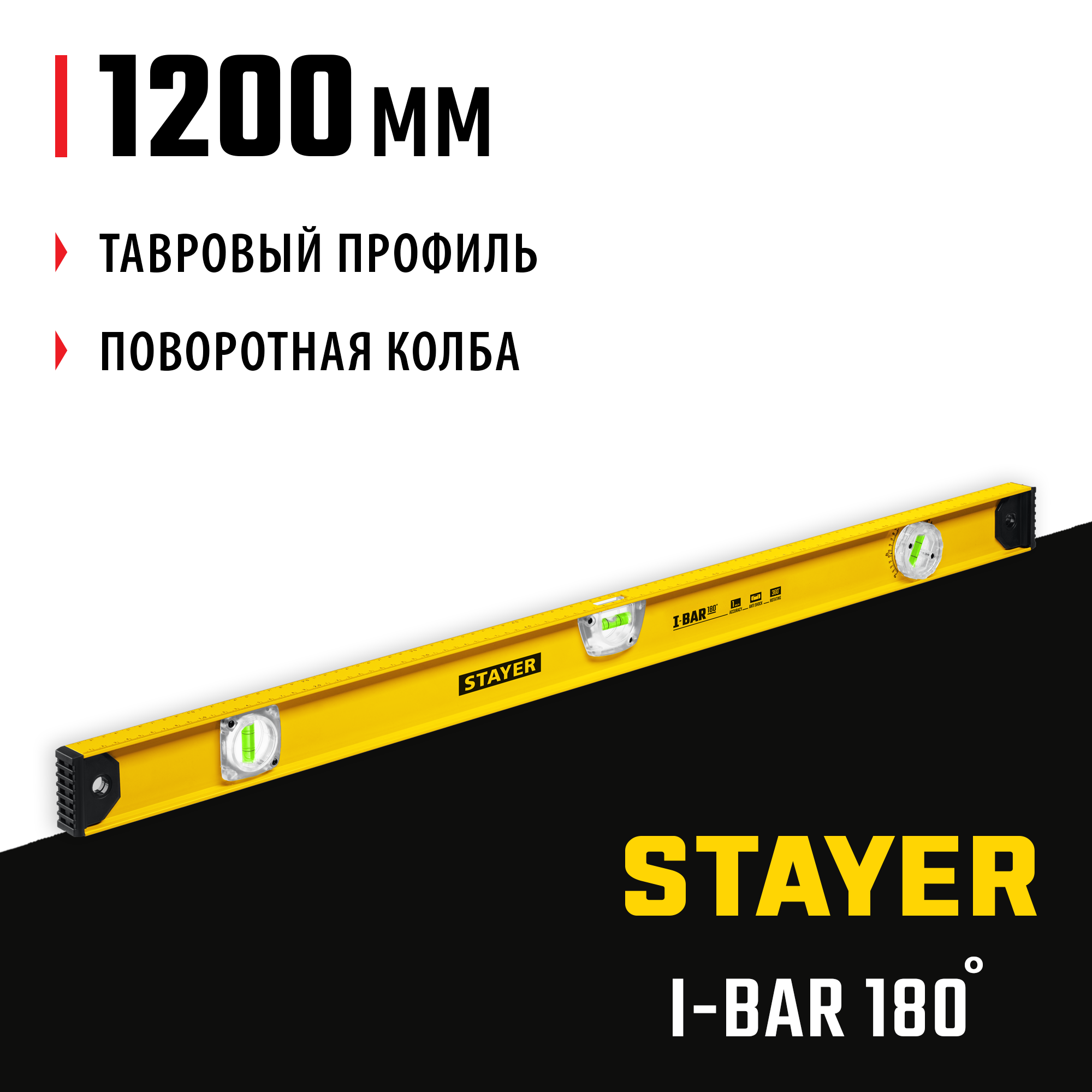 Доставка инструмента Уровень I-BAR 180° STAYER 1200 мм, 3 глазка, линейка, поворотный глазок, двутавровый 3470-120_z02