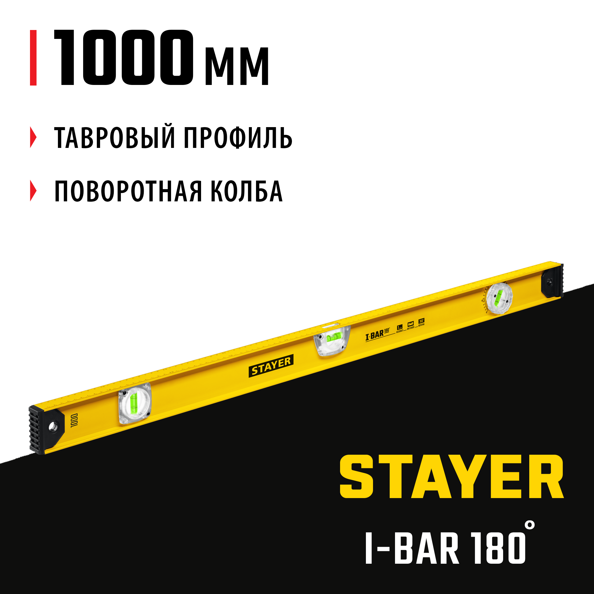 Доставка инструмента Уровень I-BAR 180°STAYER 1000 мм, 3 глазка, линейка, поворотный глазок, двутавровый 3470-100_z02