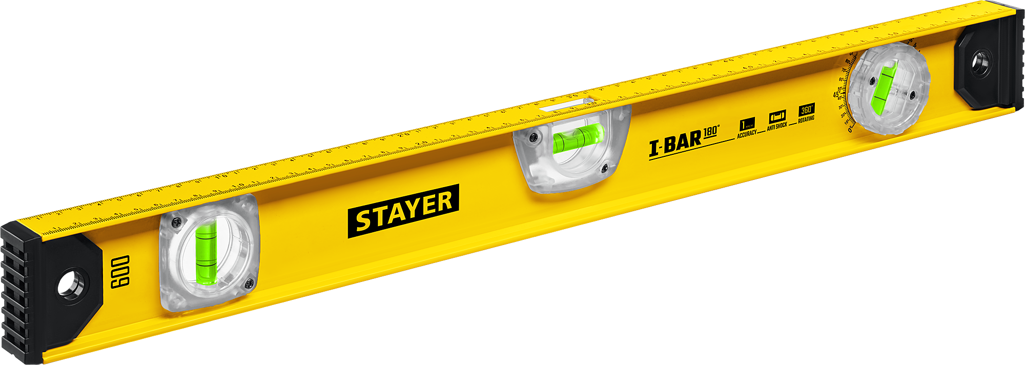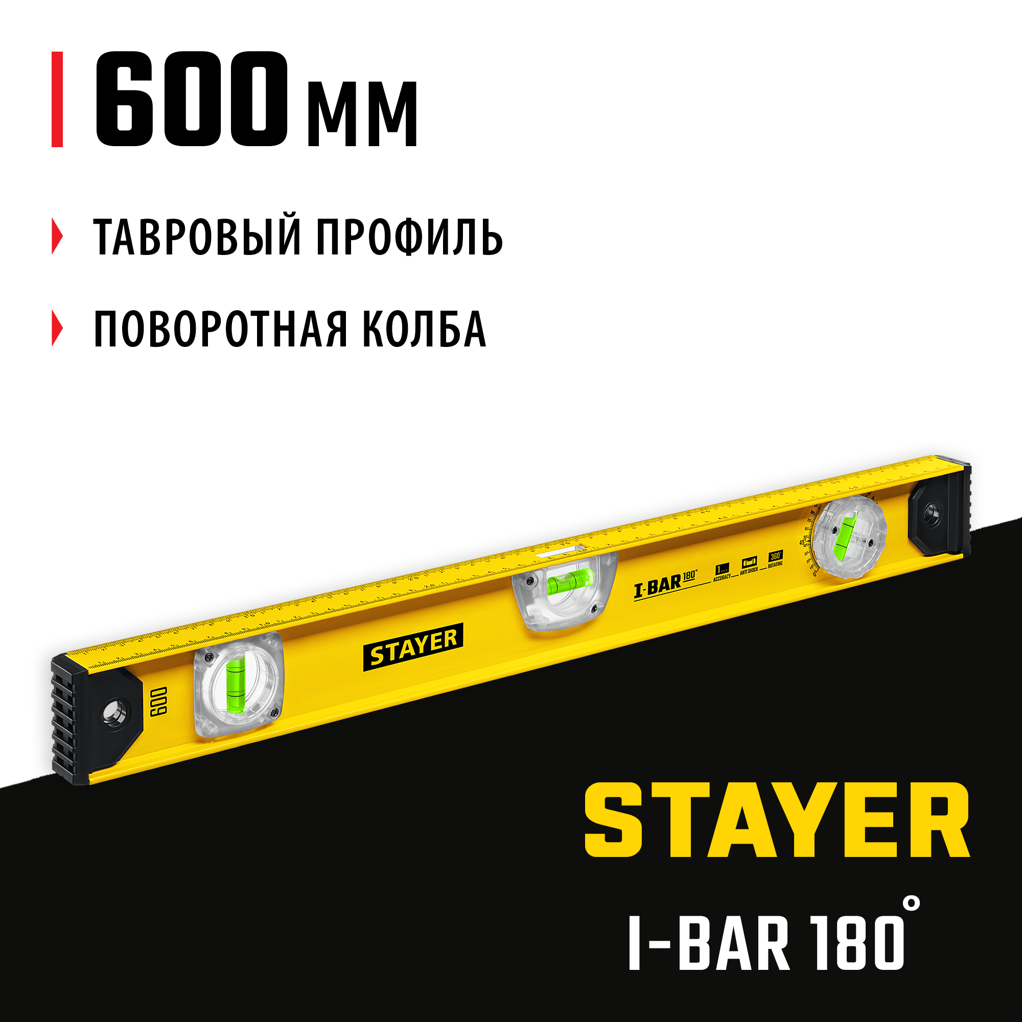 Доставка инструмента Уровень I-BAR 180°STAYER 600 мм, 3 глазка, линейка, поворотный глазок, двутавровый 3470-060_z02