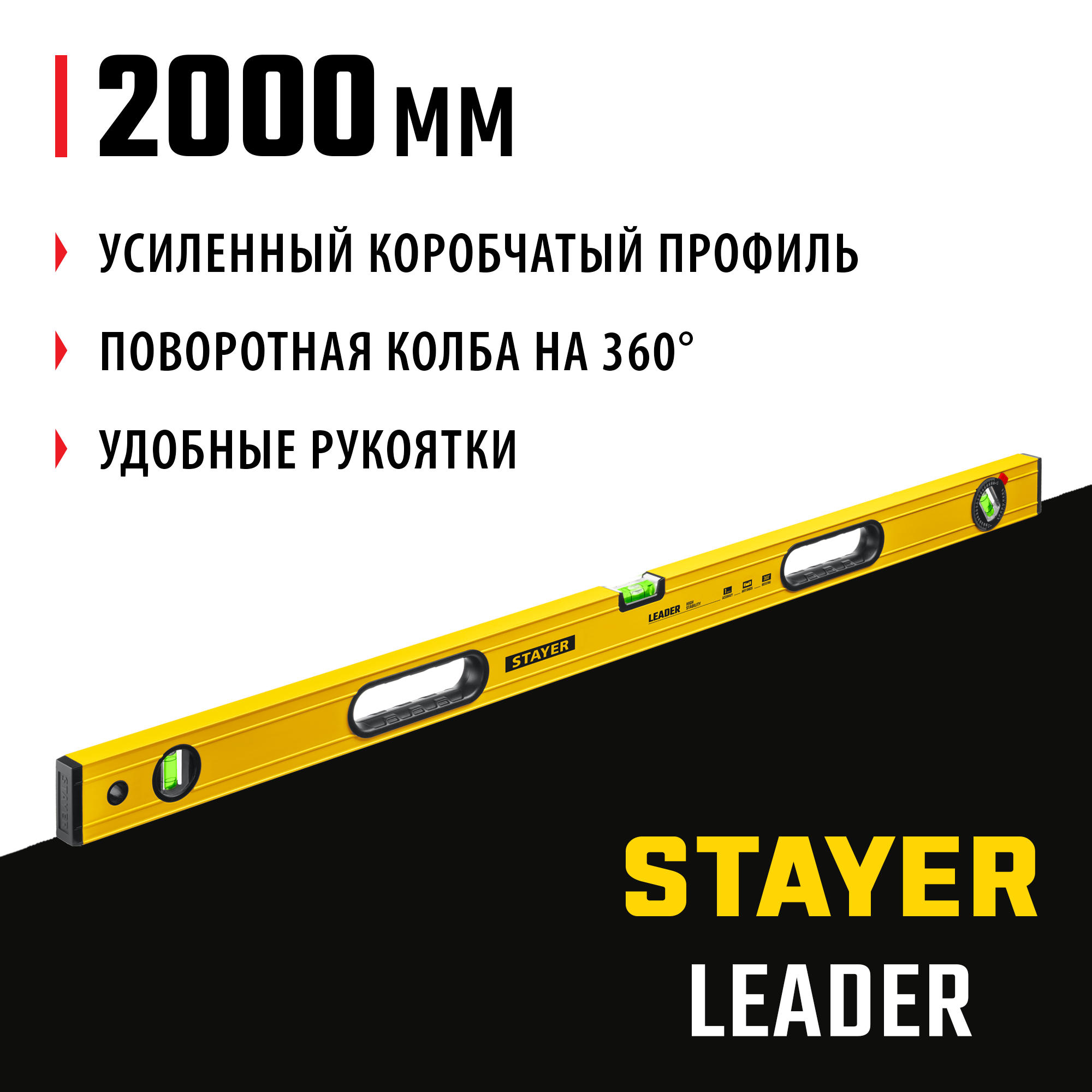 Как купить Уровень STAYER 2000 мм, строительный фрезерованный LEADER 3466-200_z01?