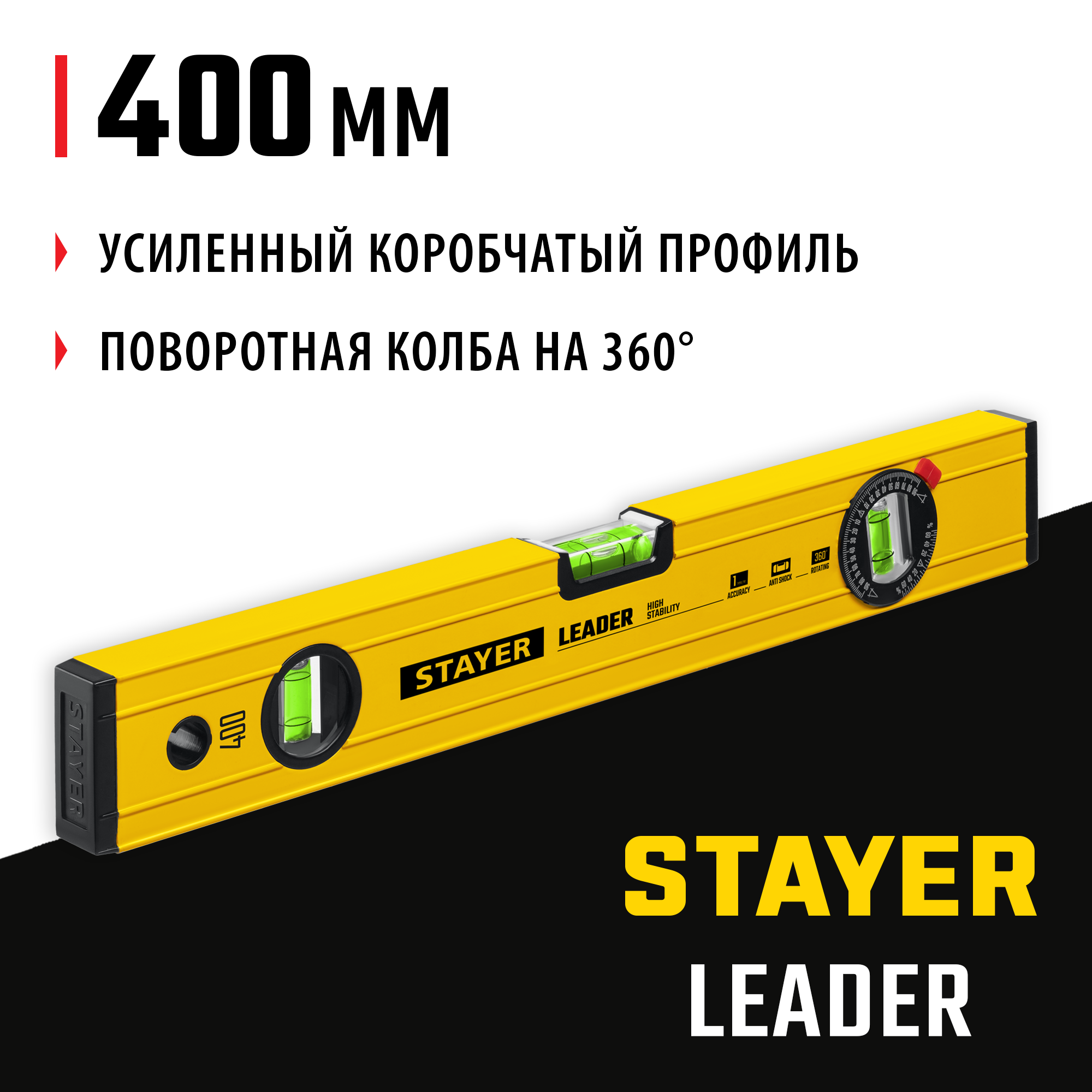 Доставка инструмента Уровень строительный фрезерованный STAYER 400 мм, LEADER 3466-040_z01