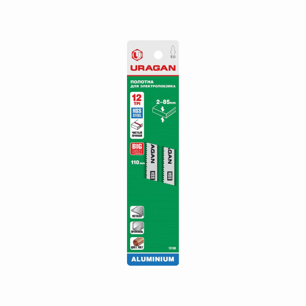 Доставка инструмента Полотно для эл/лобзика URAGAN по металлу (цветной, листовой, алюм. профиль), EU-хвостовик, шаг 2 мм, 132/110 мм, 2 шт, HSS URAGAN