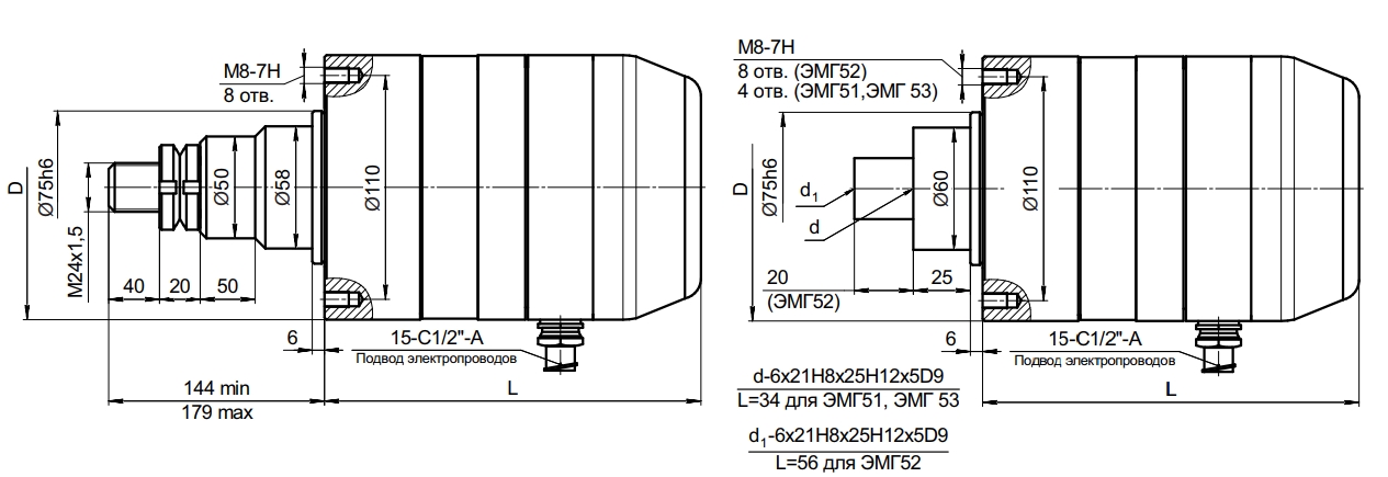 | ЭМГ 50 | 394 | Ø130h8 | 15-45 | - | - | - | 375 | 450 | 3200 | 35 | 2 | 21 |