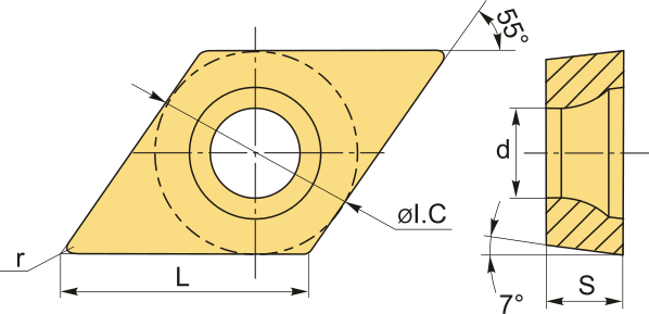 DCMT070204 LF6118 токарная пластина Deskar - сменная твердосплавная пластина DCMT по металлу предназначена для обработки материалов по ISO: PMK.