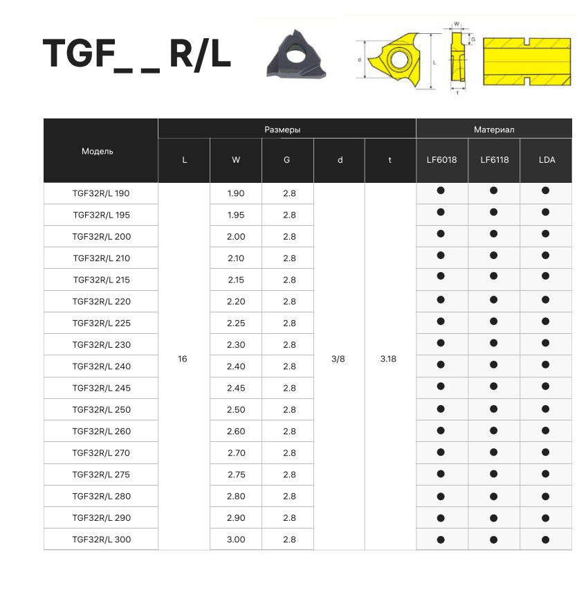 TGF32L 230 LDA пластина для отрезки и точения канавок Deskar - сменная твердосплавная пластина TGF R/L по металлу предназначена для обработки материалов по ISO: PM.