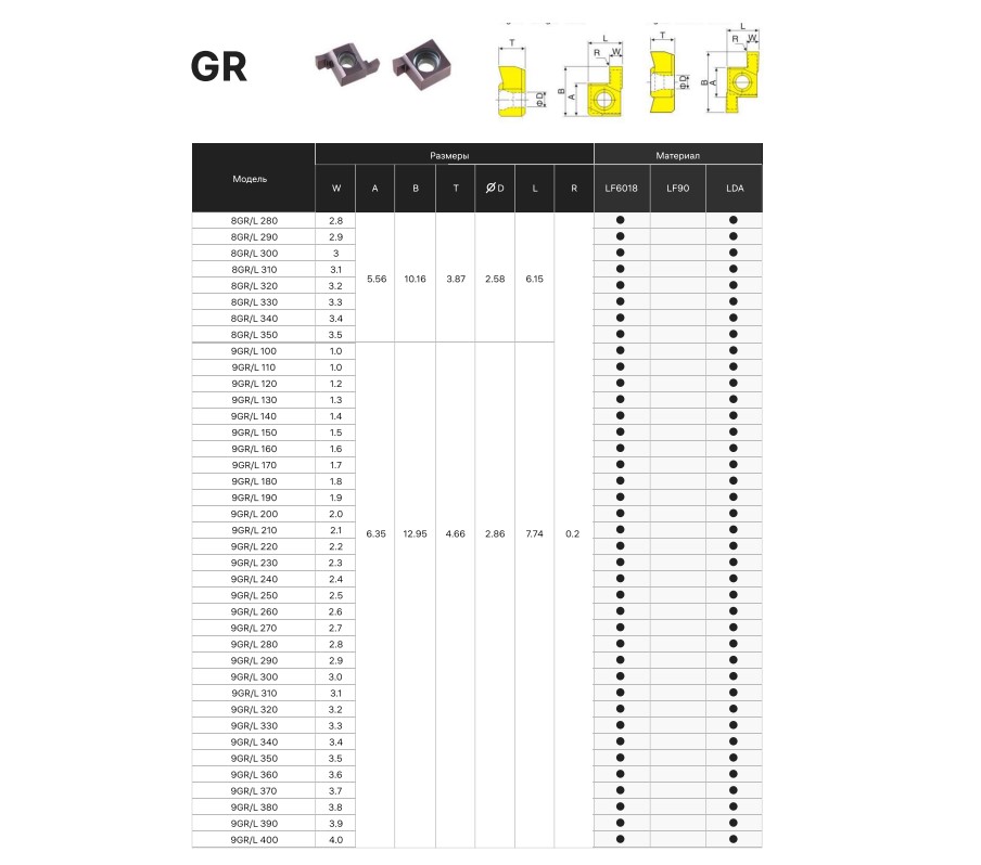 8GR 300 LDA пластина для отрезки и точения канавок Deskar - сменная твердосплавная пластина GR по металлу предназначена для обработки материалов по ISO: PM.