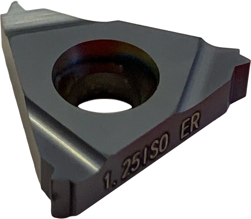 Сменная твердосплавная пластина предназначена для нарезания по профилю наружной резьбы с шагом 1.25 мм. Обрабатываемые материалы по ISO PM.