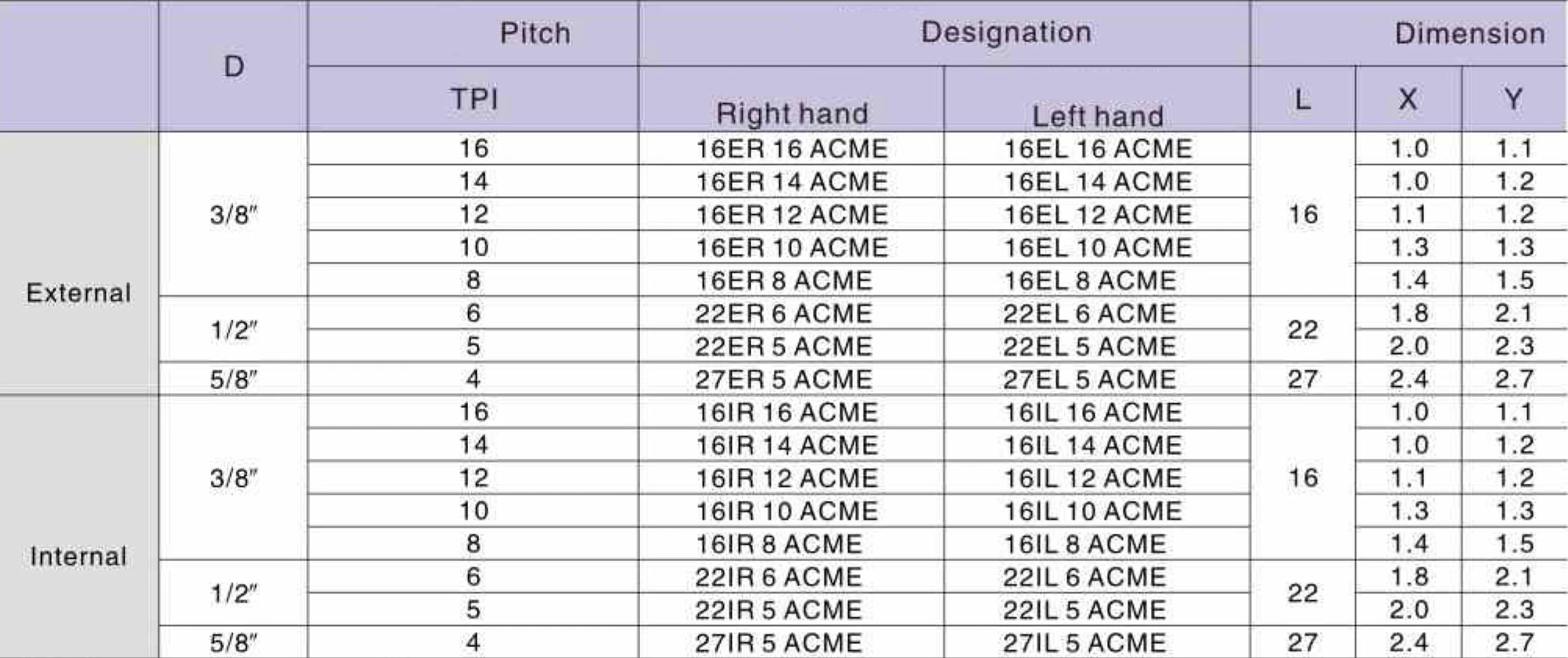 | 154699 | 22 | IR | ACME - Американская трапецеидальная резьба 29° | LDA | 415.00 ₽ |