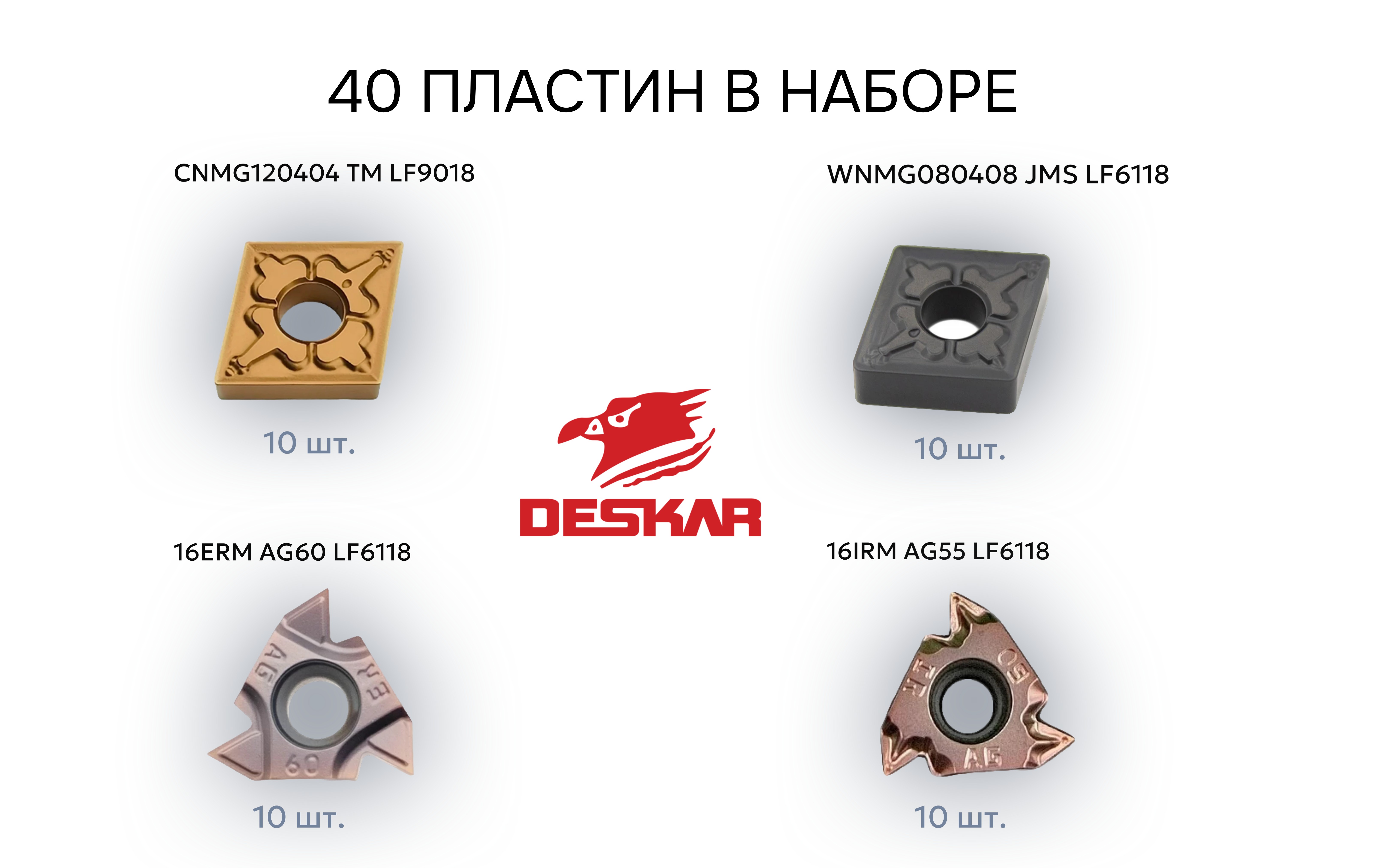 В набор входит 4 державки и 4 вида пластин по 10 штук в упаковке от надежного бренда DESKAR.