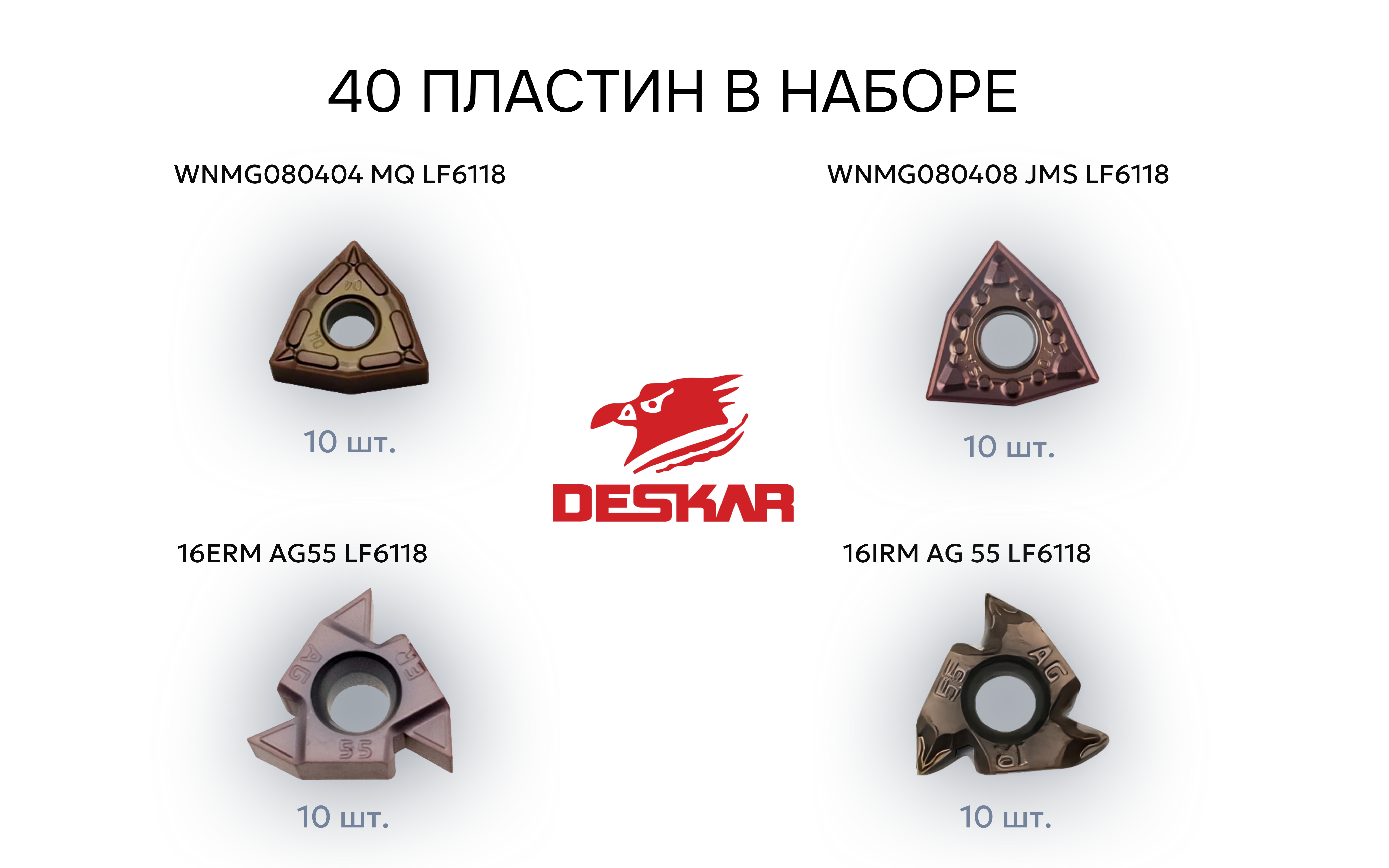 В набор входит 2 державки и 4 вида пластин по 10 штук в упаковке от надежного бренда DESKAR.