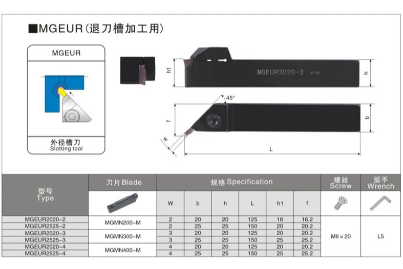 MGEUR2020-4C державка для обработки канавок и отрезки Deskar используется с режущими пластинами MGMN400-**-M (размер: 4) для обработки металла.