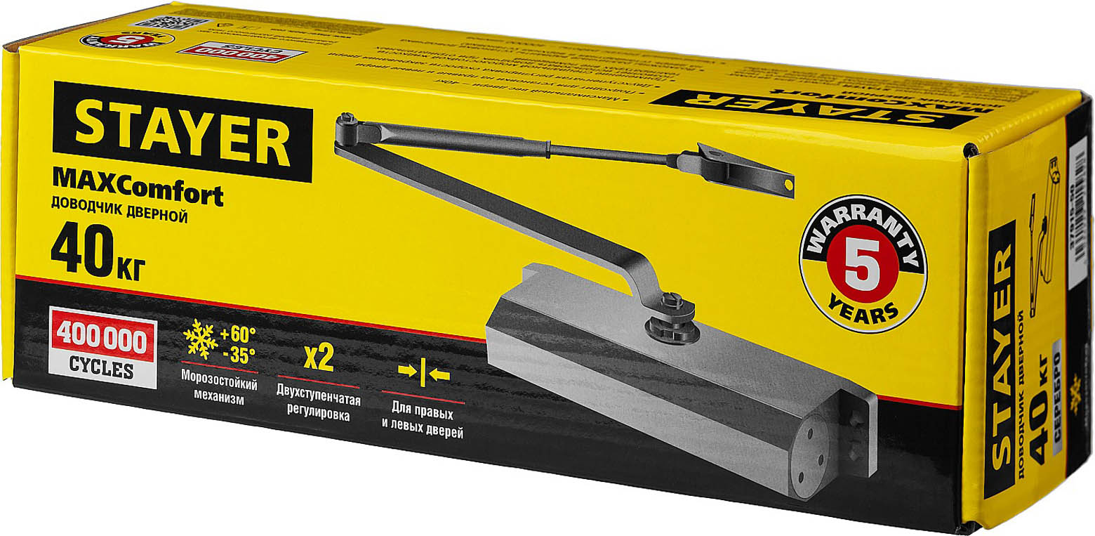 Доставка инструмента Доводчик дверной STAYER MAXComfort 37915-50 вес двери 40 кг, высота 36 мм, материал силумин