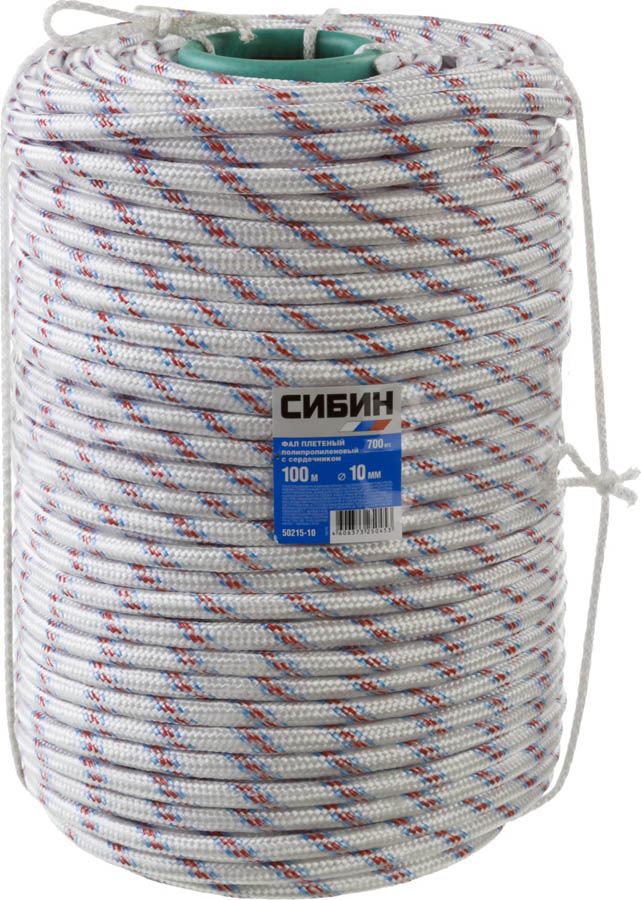 Как купить Фал плетёный полипропиленовый с сердечником СИБИН 50215-10 100 м, 10 мм, 24-прядный, 700 кгс?