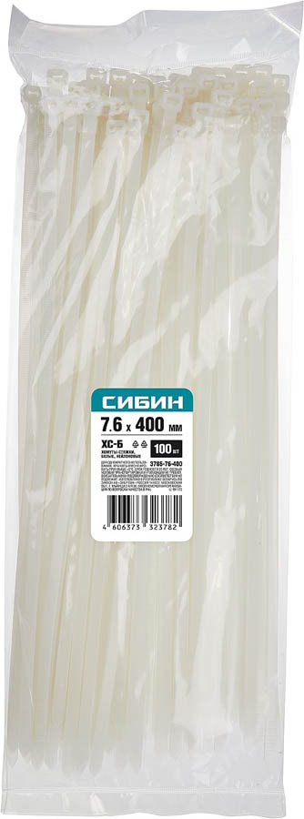Как купить Хомуты нейлоновые белые СИБИН 400х7.6 мм, 100 шт, 3786-76-400?