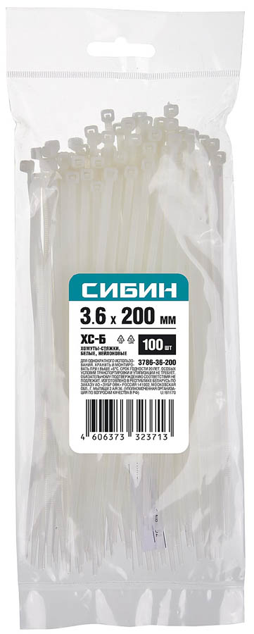 Как купить Хомуты нейлоновые белые СИБИН 200х3.6 мм, 100 шт, 3786-36-200?