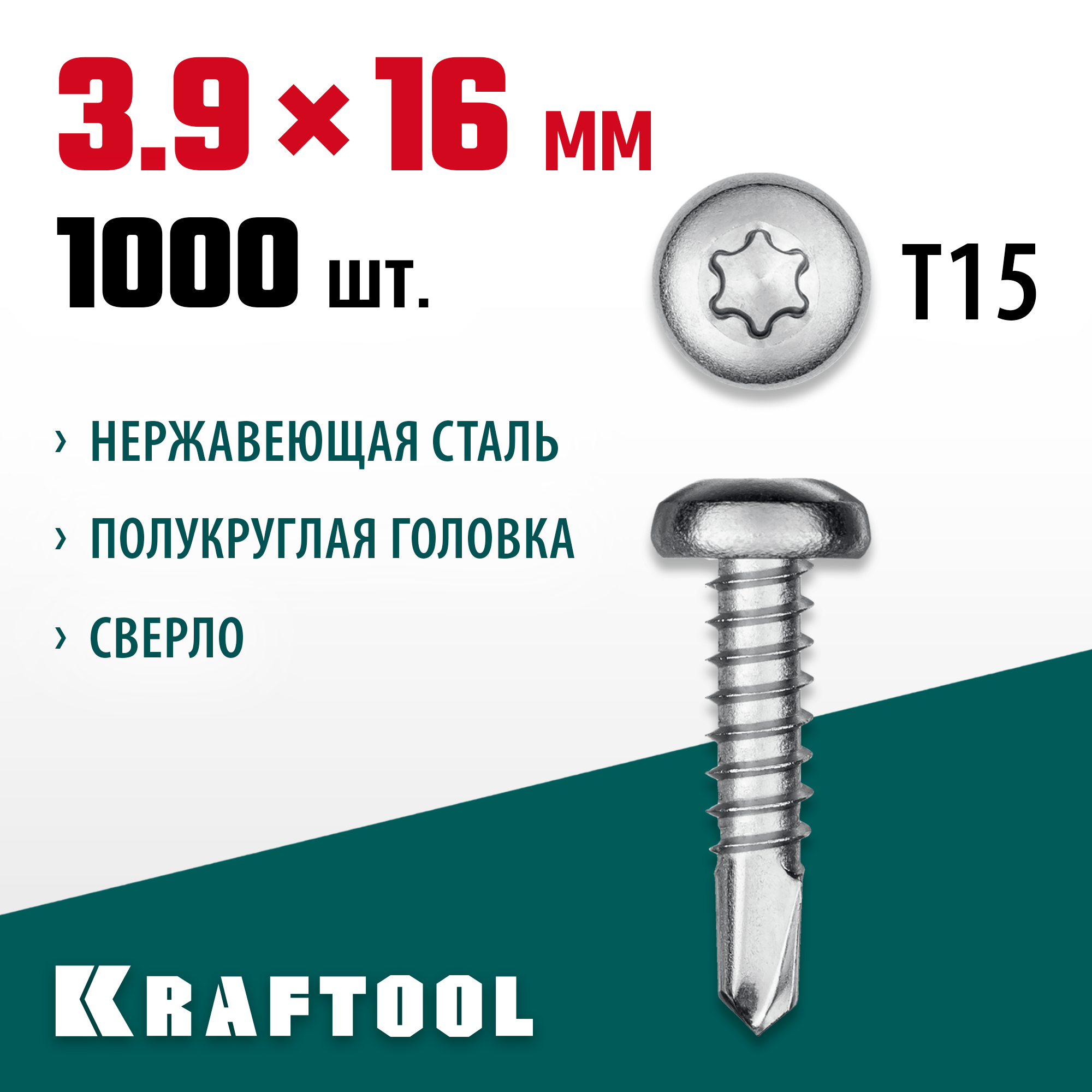 Как купить Нержавеющие саморезы НС-ПК с полукруглой головкой KRAFTOOL 300931-39-016 16 х 3.9 мм, 1000 шт.?