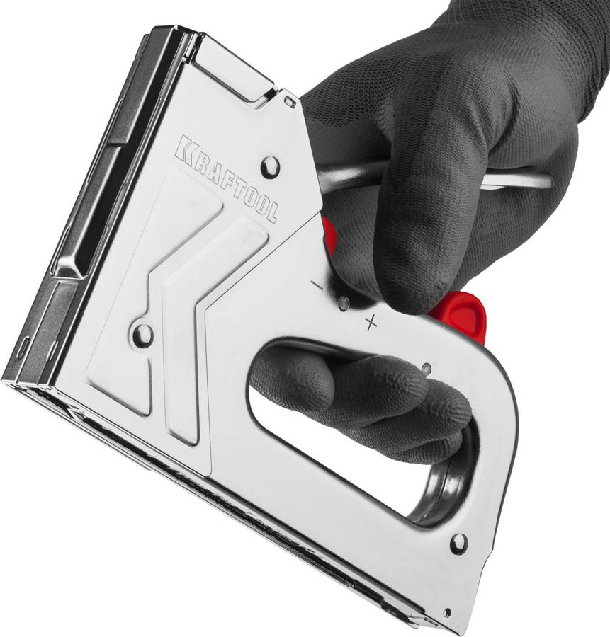 Степлер мебельный строительный KRAFTOOL 3180, предназначен для работы по обивке мебели. Профессиональный степлер для тонкой скобы, а также штифтов и гвоздей. Сила удара пластинчатой пружины в 2 раза больше. Минимальное усилие при сжатии. Минимальная отдача. Регулировка силы удара для разной длины скоб. Безопасная фиксация рукоятки. Усиленный стальной корпус. Безопасная загрузка скоб снизу.